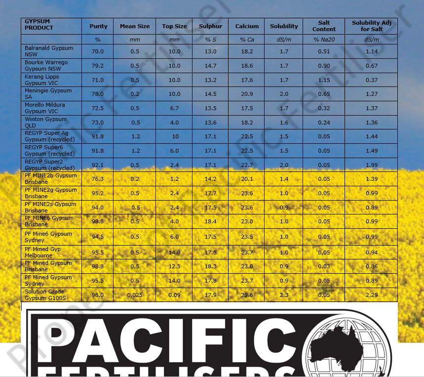 Pacific Fertiliser recently undertook detailed research into the bulk agricultural gypsum products available on the eastern seaboard of Australia. This research continues on from the NSW Department of Primary Industries work in 1996 which was reported in the AgFact AC.10 (Agdex 514) document.